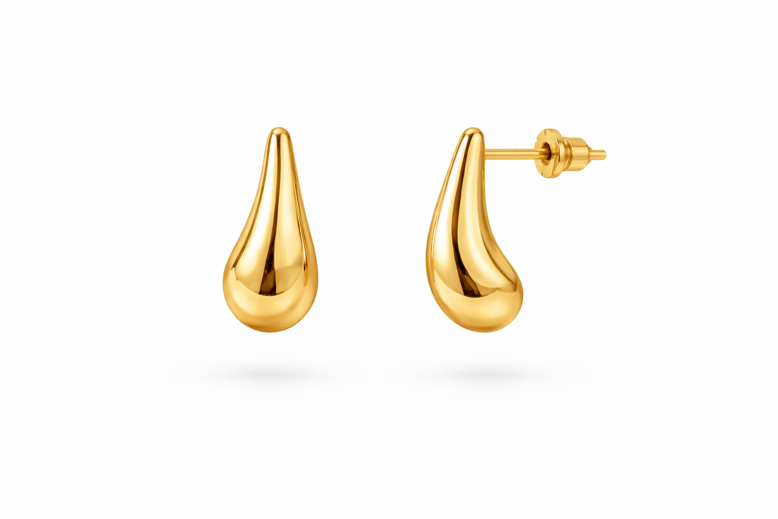 Minimal gold teardrop stud earrings with a smooth, polished finish. Timeless and lightweight — the perfect everyday studs designed to elevate any look.